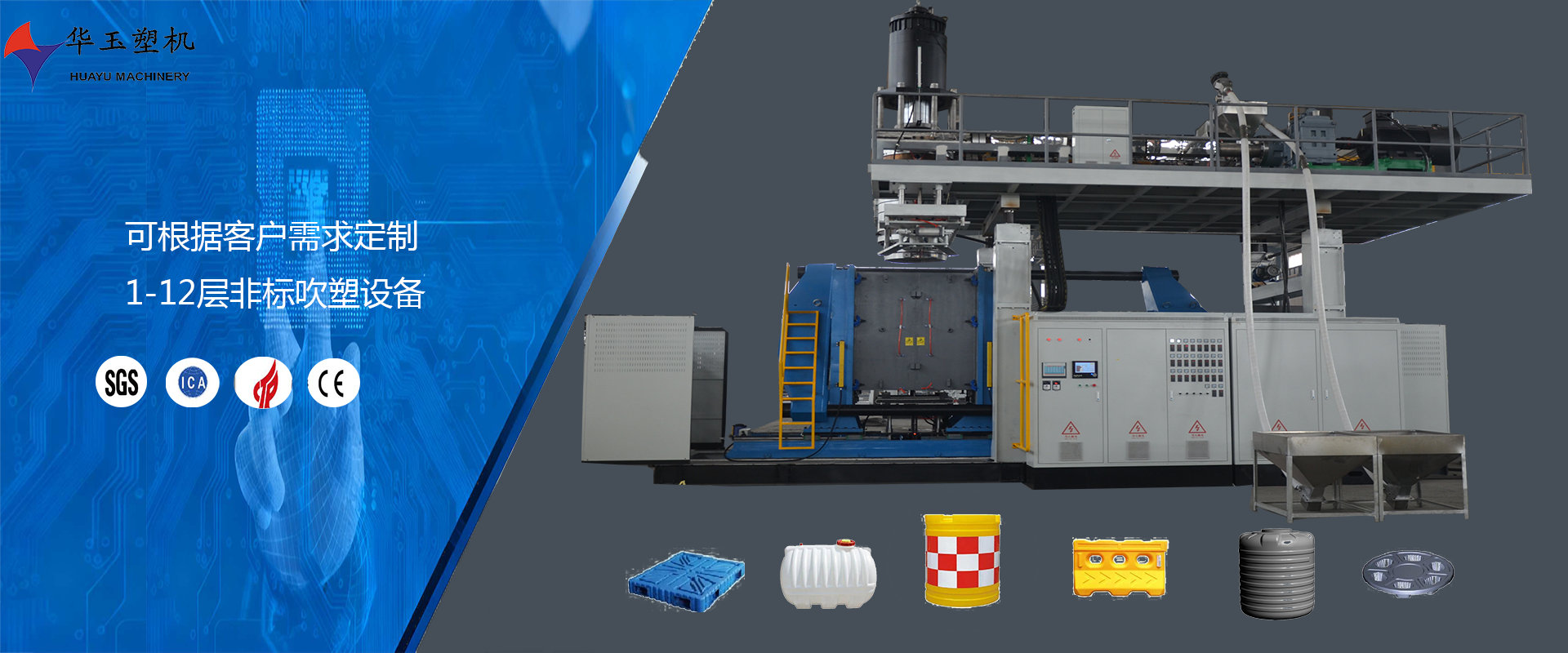 濰坊市華玉塑料機(jī)械有限公司創(chuàng)辦于貳零零貳年,是超大型全自動(dòng)中空吹塑設(shè)備專業(yè)生產(chǎn)廠家。公司融合國(guó)內(nèi)外先進(jìn)技術(shù)和理念,專業(yè)設(shè)計(jì)、生產(chǎn)、銷(xiāo)售一層到十層的大型全自動(dòng)中空成型機(jī)組。我公司生產(chǎn)的各型號(hào)吹塑機(jī)可生產(chǎn)50升到30,000升的各類(lèi)塑料水桶,噸桶、雙環(huán)桶、水馬、路錐、隔離墻托盤(pán)、桌板、浮筒、皮劃艇、工具箱包等中空制品。優(yōu)良的品質(zhì)、穩(wěn)定的性能、優(yōu)越的性價(jià)比使公司產(chǎn)品不僅暢銷(xiāo)國(guó)內(nèi)市場(chǎng),并出口到亞洲、東南亞、中東、歐洲、北美、南美、非洲等80多個(gè)國(guó)家和地區(qū),深受客戶的好評(píng)...